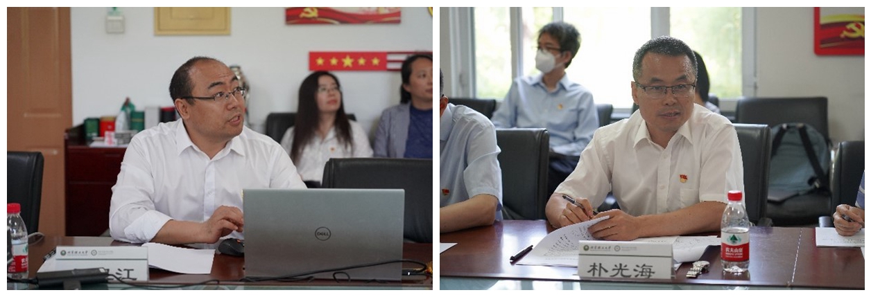 微电子技术研究所党支部书记王卫江和信息情报研究院期刊编研室党支部书记朴光海分别介绍了双方党支部的基本情况,并就党支部开展党组织建设、科研创新、社会服务等情况进行了介绍。