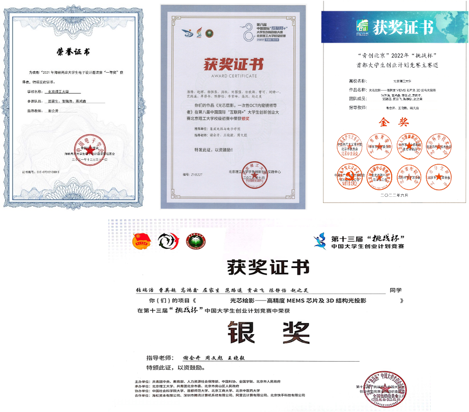 学生自我成长方面,i2MEMS团队会定期组织学生参加相关学术培训与学术会议,提升学生的科研能力,扩展学生科研眼界。如2021年10月22~24日i2MEMS团队组织学生参加《第36期“见微知著”培训课程:微光学元件及应用》,由i2MEMS团队谢会开教授、无锡微奥科技有限公司副总经理王鹏博士等带来了MEMS微镜原理及应用的讲解,让学生们能够在短时间对微光学元件的原理、典型元件、制造方法及应用等不同方面有较深了解,从而帮助学生拓展思路,开阔视野。2023年,研究所共有6名硕士研究生毕业,并指导12名本科生完成毕业设计。