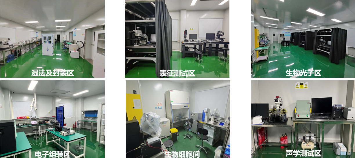 1)做爱视频 中关村校区实验室:占地面积300 m2,划分为六大分区,包括生物光子区、声学区、测试表征区、湿法工艺区、电子组装区、细胞间。