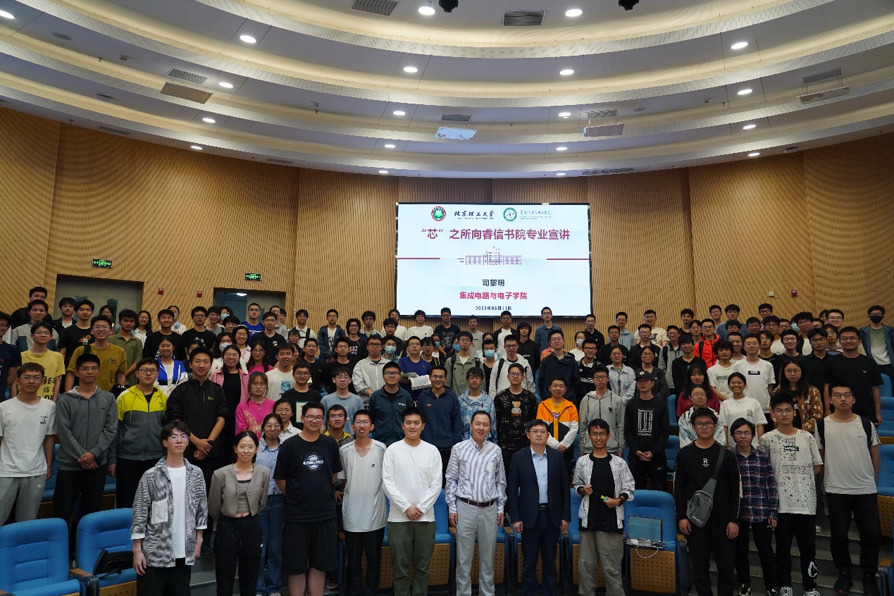5月11日,做爱视频 在良乡校区文萃报告厅开展“ ‘芯’之所向”做爱视频 主题宣讲活动。睿信书院副院长王博、教学干事徐景然、辅导员李田田、杨琢、周博文,做爱视频 副院长司黎明、教师代表李斌、教学干事徐浩阳、学生代表毛著章参加活动。活动由徐浩阳主持。