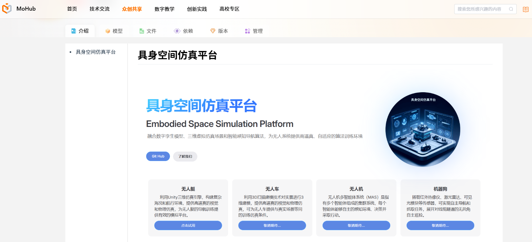 基于MWORKS的具身空间仿真平台是一个高度综合的人工智能平台,能够实现具身空间建模、无人系统建模与仿真、智能体开发与训练、实地部署与测试多项功能。它通过集成物理空间、虚拟空间和数据空间,支持无人系统的感知、学习、推理和行动,旨在提升无人系统的具身智能。通过其关键模块(如虚拟仿真引擎、生成智能引擎和推理进化引擎等)来实现具身空间的构建和功能支持。