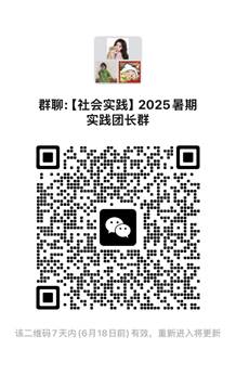 各实践团团长使用微信扫描二维码进入社会实践团团长微信群(若二维码过期可联系辅导员进群)。
