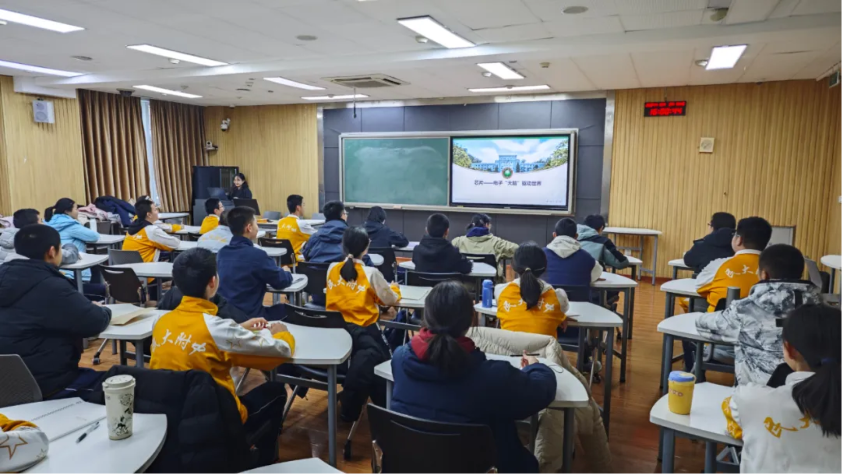 微电子技术研究所党员以《芯片--电子“大脑驱动世界”》为题为民大附中同学们讲科普讲座,详细介绍了国内芯片产业的发展机遇与挑战、芯片在未来科技发展中的核心地位和巨大潜力,以及对于国家经济、国防安全和社会生活的战略意义,进一步激发同学们对前沿科技探索的热情,以实际行动继承和发扬延安精神,为推动科技建设发展贡献力量。