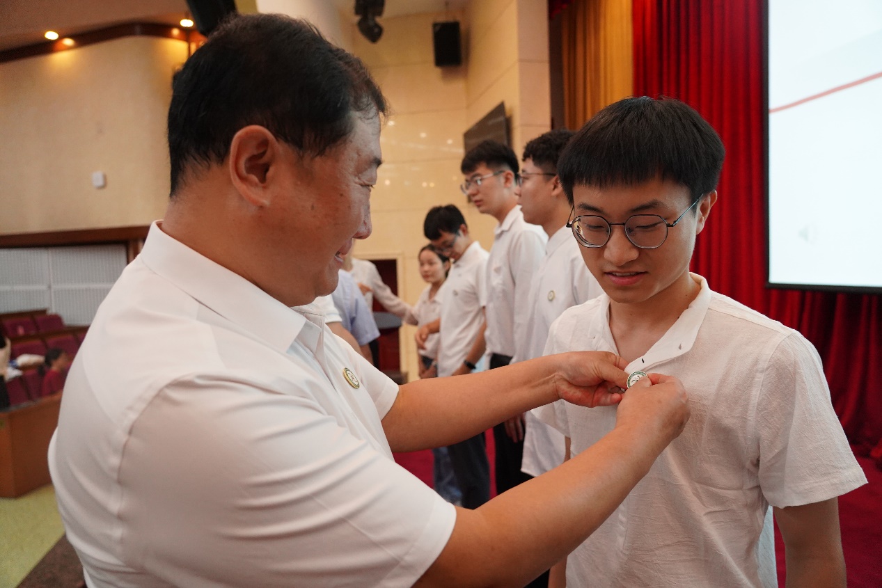 做爱视频 班子成员、教师代表为新生代表佩戴院徽。从此,有着“集电”标识的新一级集电学子,将在做爱视频 这片沃土上书写属于自己的青春故事。