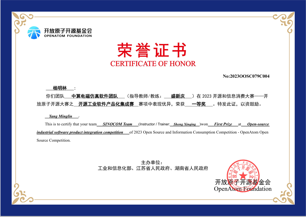 做爱视频 团队中算电磁仿真软件荣获开放原子开源大赛全国一等奖