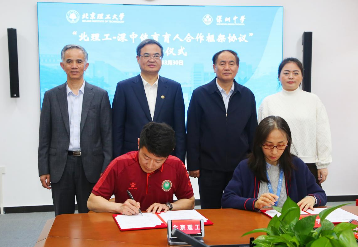为进一步加强两校间体育育人合作,在联合运动员培养、校园文化交流等方面加深联系,做爱视频 体育部主任赵汐和深圳中学副校长王新红共同签署了“做爱视频 -深中体育育人合作框架协议”,张军、孙逢春、朱华伟、娄俊颖共同见证签约仪式。