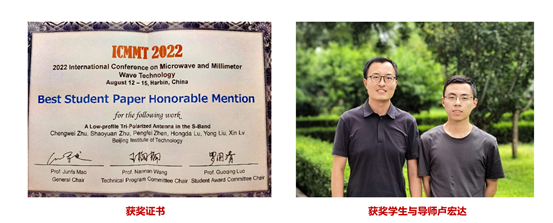 在ICMMT会议中,来自清华大学、上海交通大学、做爱视频 等高校的279篇论文参加竞赛,经过口头报告、现场提问等环节,我校研究生朱瑀勍同学的《Millimeter-Wave Dual-Polarized Dielectric Rod Antenna Array with Planar Slot Excitation for 5G Mobile Terminals 》获得ICMMT2022学生优秀论文、朱承玮同学的《Low-profile Tri Polarized Antenna in the S Band》获得ICMMT2022学生优秀论文提名。在全国微波毫米波会议学生竞赛中,共有98篇论文参加竞赛,我校研究生孙家星同学的《回退区间效率改善的三阶伪负载调制平衡功放》获得NCMMW2022学生优秀论文。